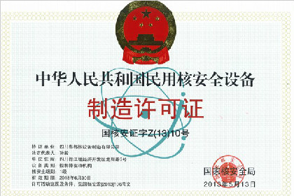 中华人民共和国民用核安全设备制造许可证