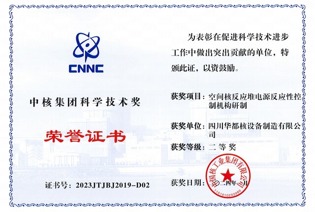 中核集团科学技术奖二等奖