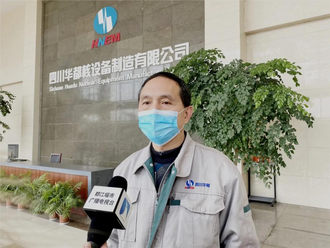 四川华都核设备制造有限公司副总经理邬立成介绍到,快堆项目和“华龙一号”的生产任务在春节前就已很紧张,本来是打算在正月初四就要加班,受疫情影响无法加班。前期,按照都江堰市疫情防控要求,公司达到条件复工后第一时间就抓紧投入生产。“为了不影响国家重点工程的进展,我们将采取积极措施、千方百计抓好质量与生产,保证按期完成任务。”邬立成说。